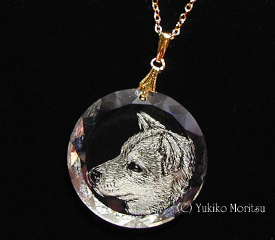 スワロフスキー・クリスタルペンダント (直径 2.8cm) 技法: グラスリッツェン(手彫りガラス) 2001年制作 |